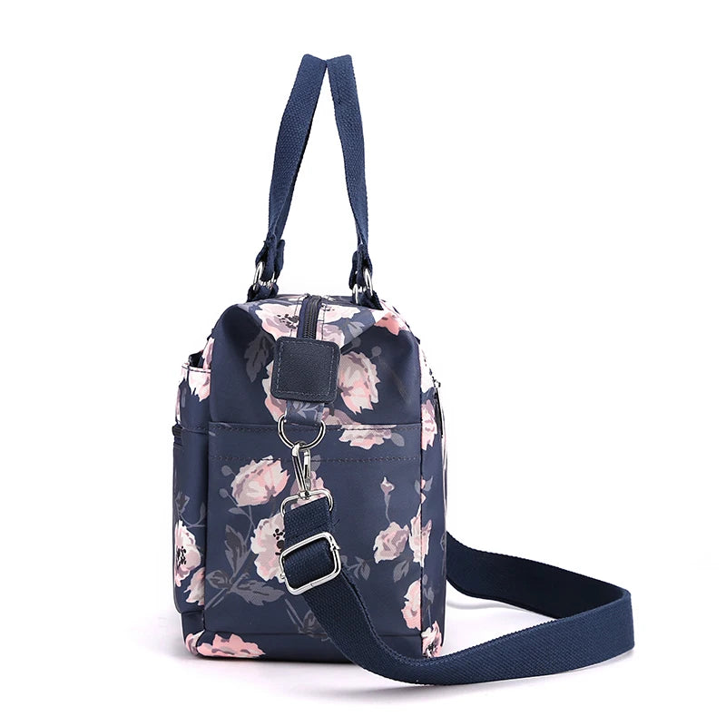 Stay stylish and organized with this nylon handbag that features a beautiful flower printing design. It is waterproof and perfect for everyday use.