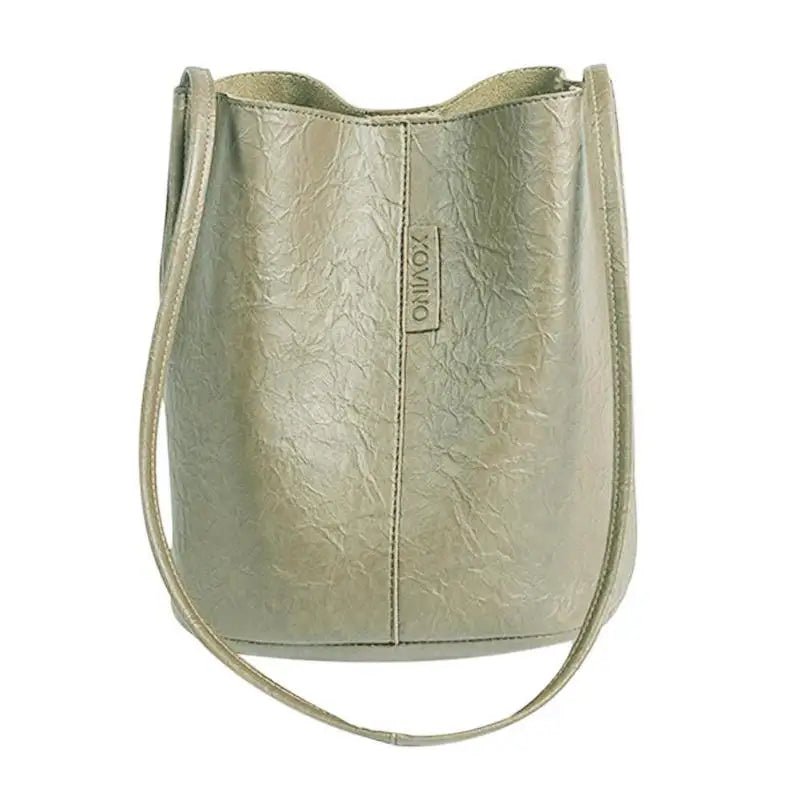 Women's PU Leather Bucket Crossbody Bag for Hiking