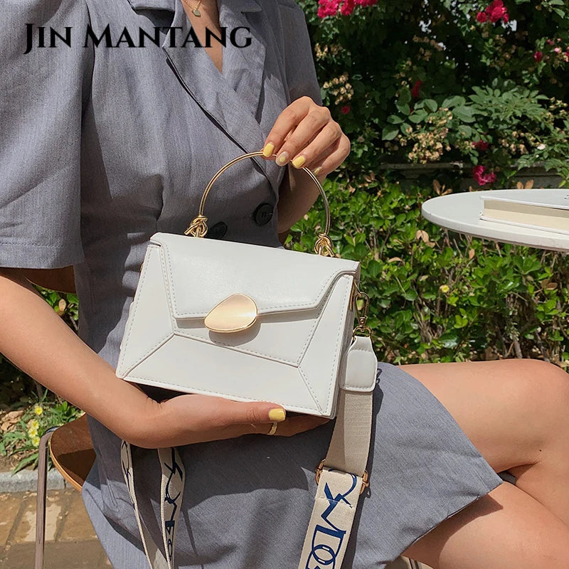 Women's PU Leather Crossbody Bag with Metal Short Handles