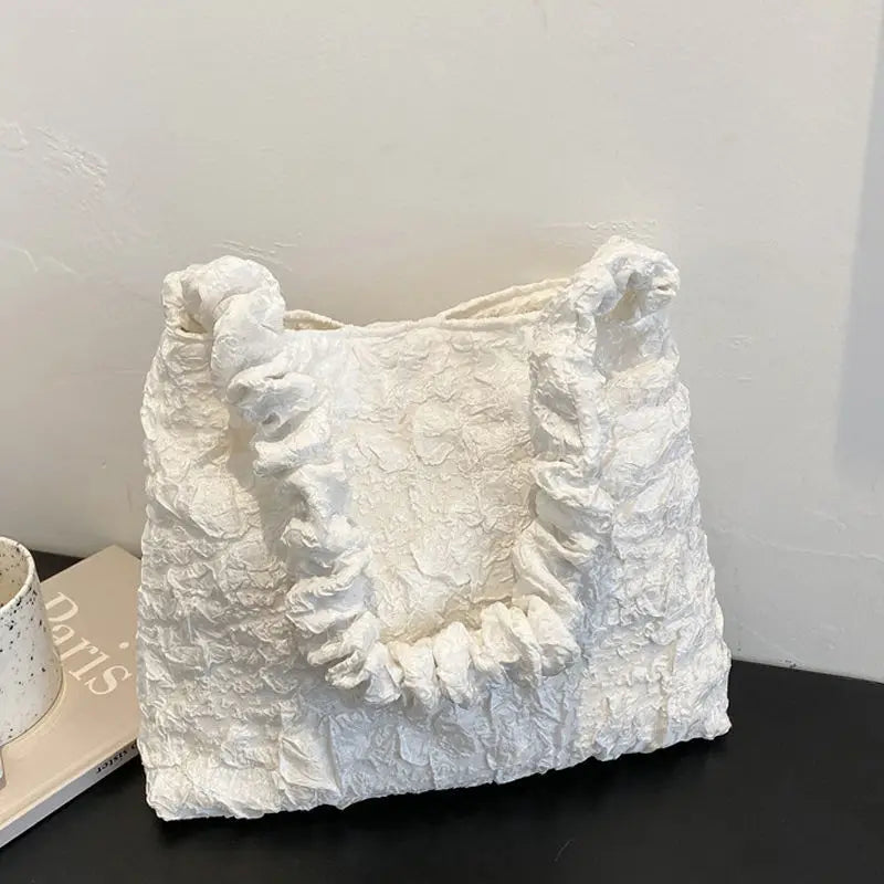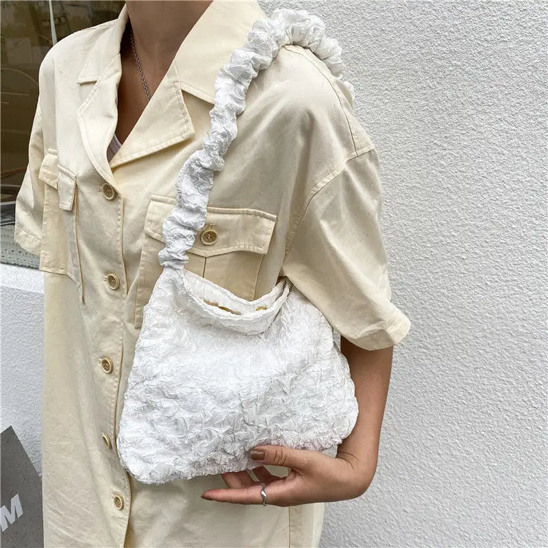 Stay stylish with this pleated shoulder bag made of high-quality PU leather. It offers a spacious interior for all your essentials, making it an ideal accessory for summer.