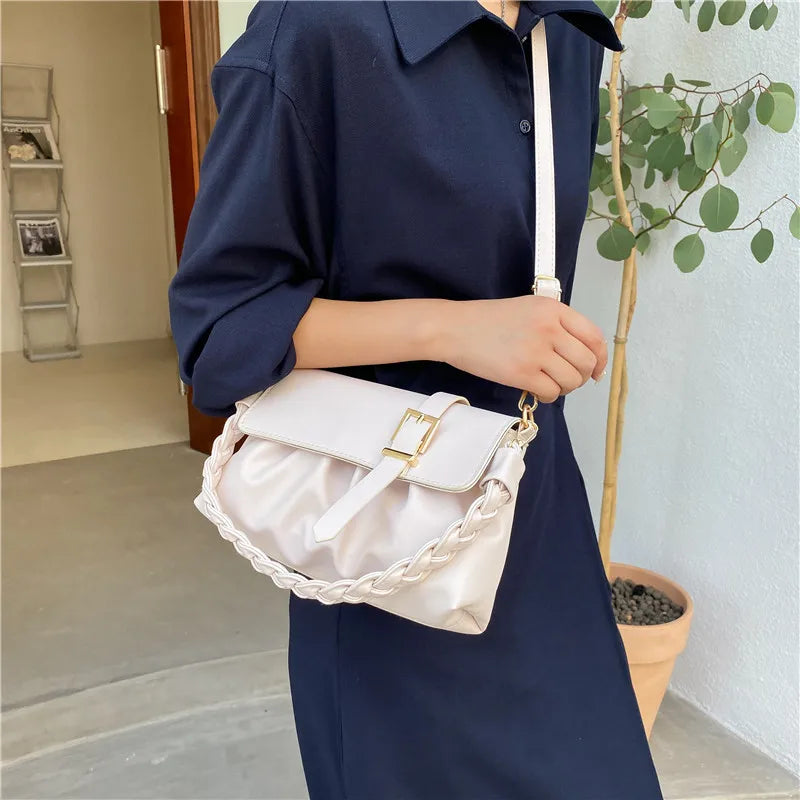 This stylish and versatile shoulder bag is made of high-quality PU leather, perfect for everyday use. Features a pleated design and a convenient flap closure.