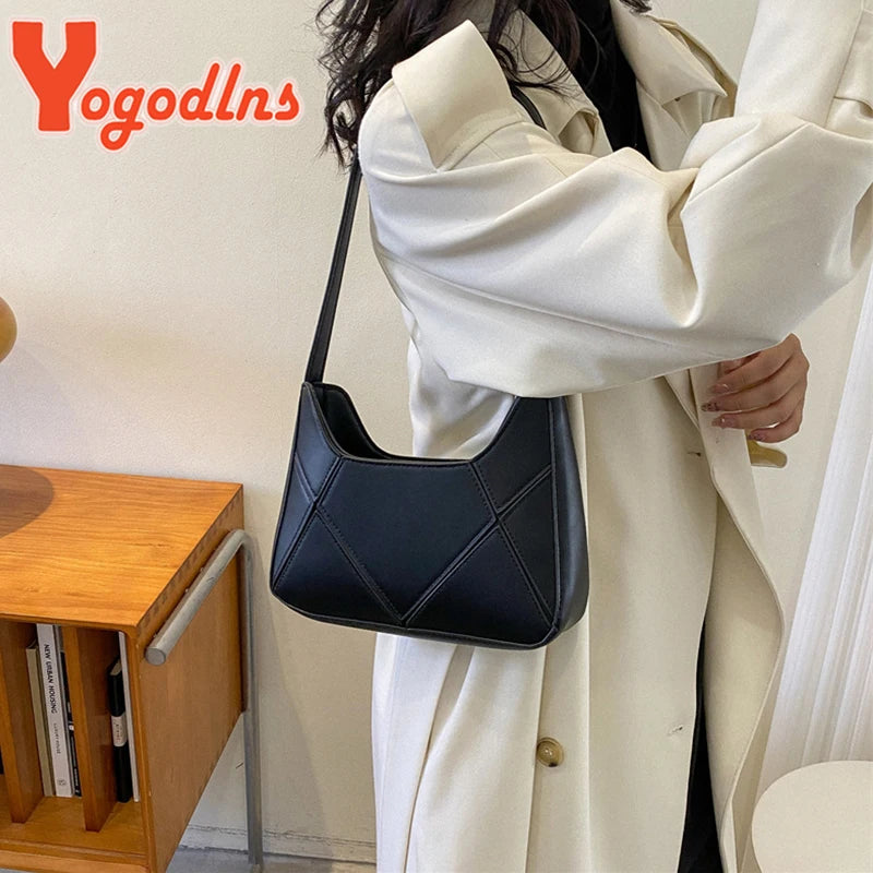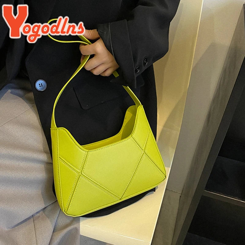 This stylish underarm bag is made of high-quality PU leather, featuring a unique design that can be worn on the arm or shoulder. It is perfect for carrying your essentials in style.