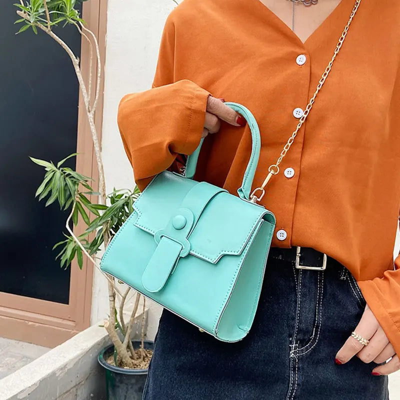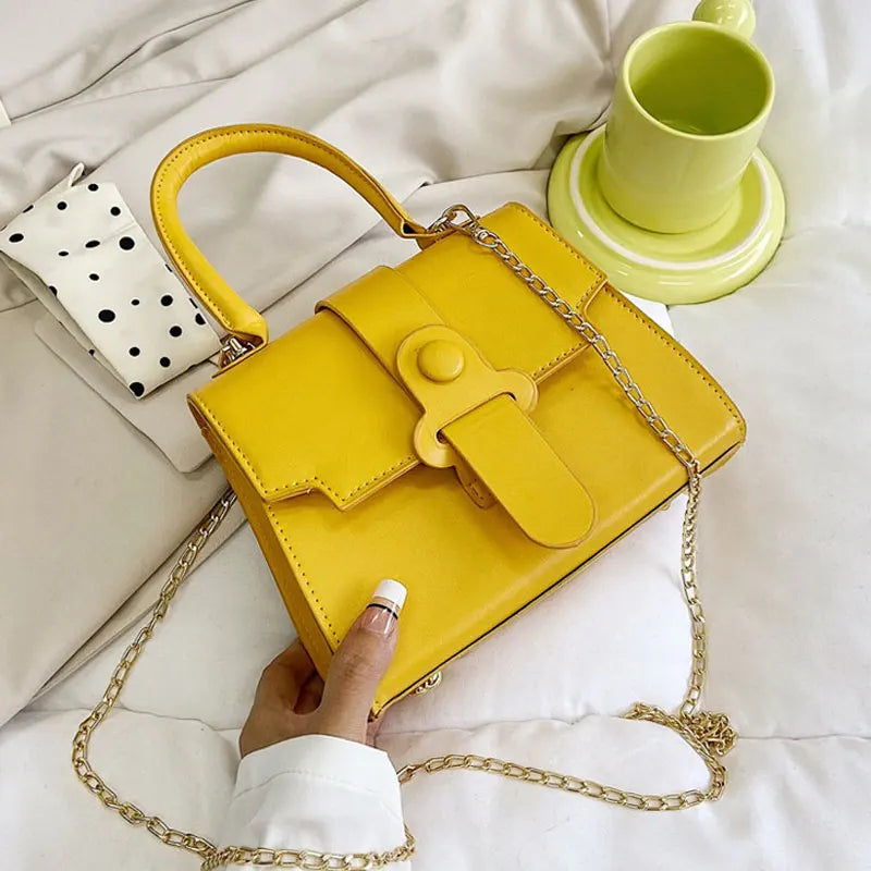 This stylish shoulder bag is made of high-quality PU leather and features a chain strap. It includes a small square purse for added convenience and style.