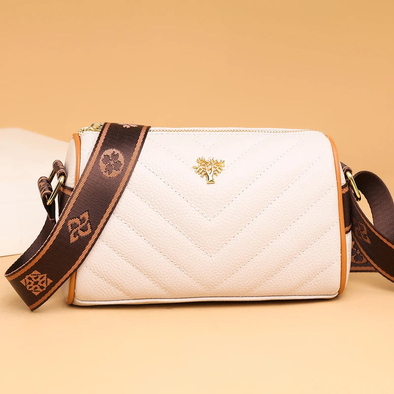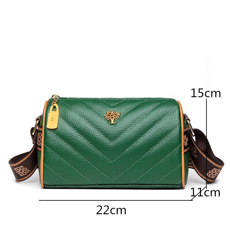 Elevate your style with this genuine leather shoulder bag featuring wide straps, ideal for everyday use. This compact crossbody bag offers a touch of elegance and functionality for women on the go.