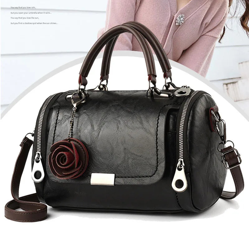 Women's Retro Rose Pendant Leather Shoulder Bags