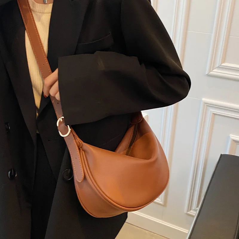 Women's Retro Solid PU Shoulder Bag Dumpling Bag