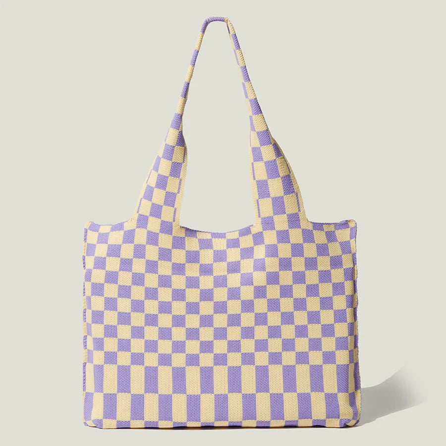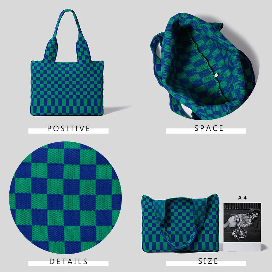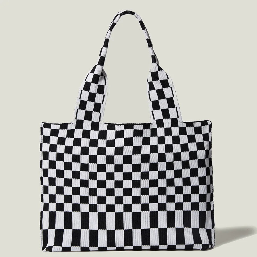 Women's Shoulder Bag Knitted Handbag Checkered Bags