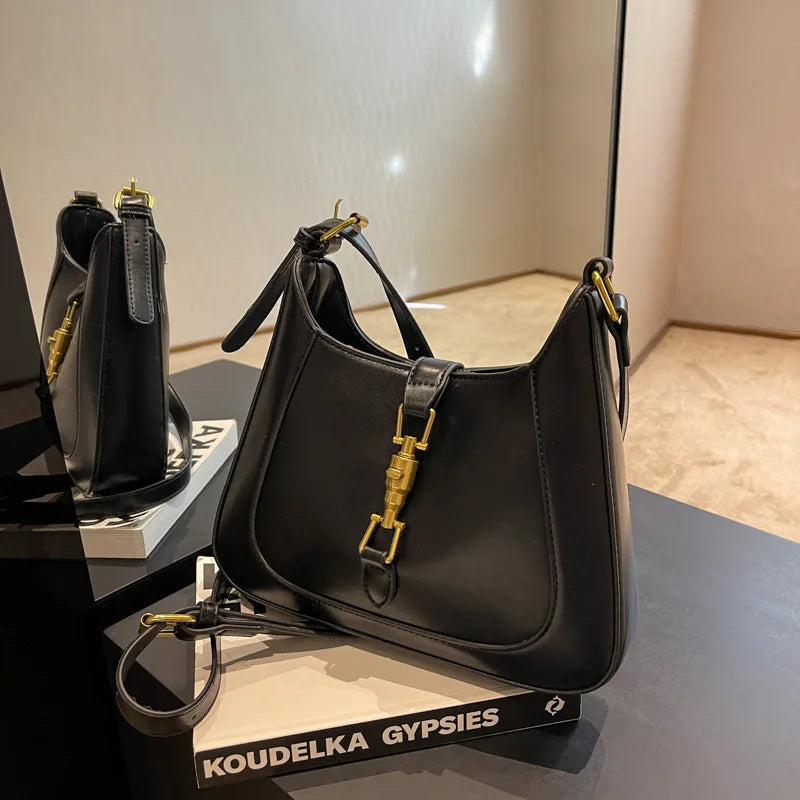 Stay stylish and organized with this PU leather shoulder bag. Features a lock closure and adjustable crossbody strap.