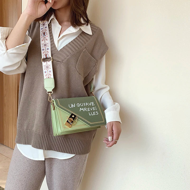 Women's Small Leather Crossbody Bag with Wide Shoulder Strap