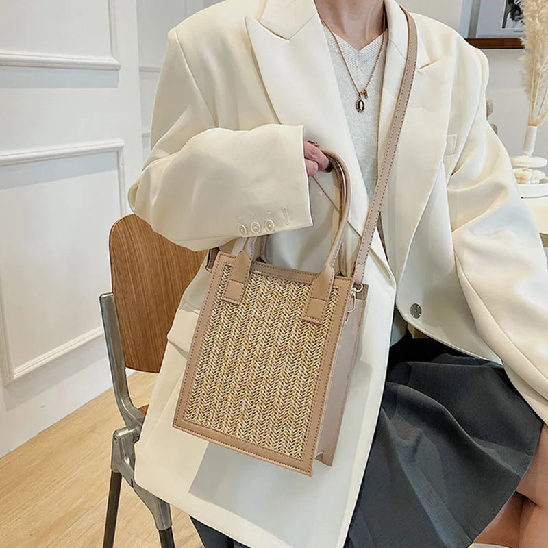 Women's Straw Bag Top Handle Shoulder Crossbody Handbag