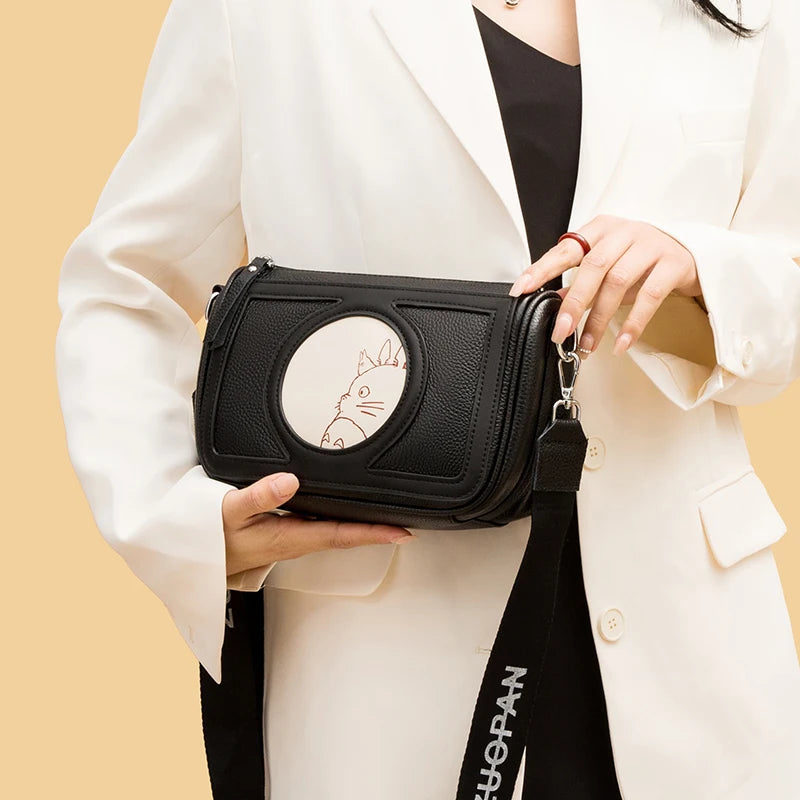 Stay stylish with this adorable Totoro cartoon leather shoulder bag, perfect for everyday use. The retro design adds a touch of whimsy to your outfit.