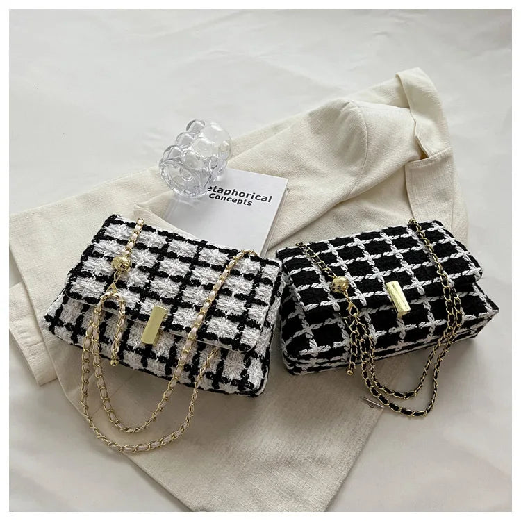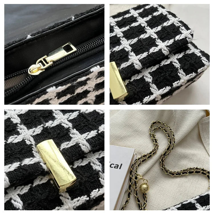 Women's Woolen Knitted Handbag Tweed Chain Shoulder Bag