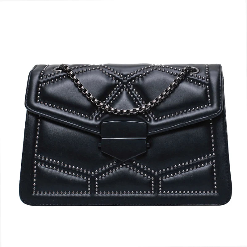 Elevate your style with this chic studded rivet chain crossbody bag made of high-quality PU leather. Perfect for any occasion, this handbag is a must-have for fashion-forward women.