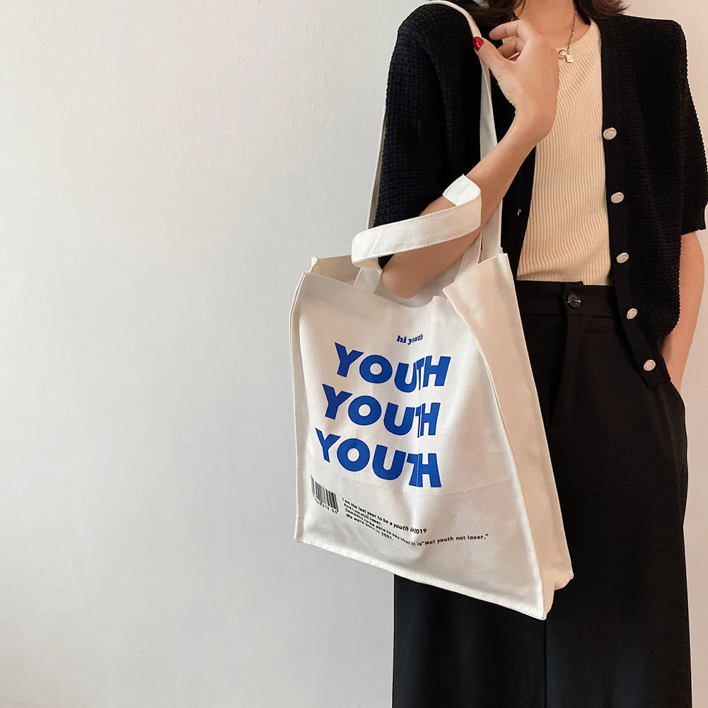 YOUTH Letters Print Cotton Cloth Shoulder Bag Eco Handbag Tote