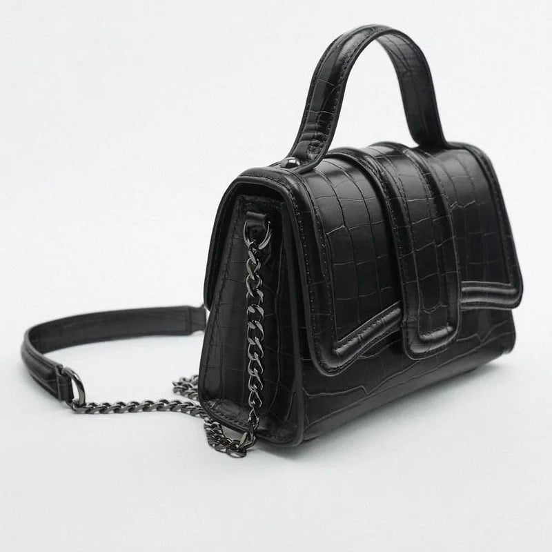 This stylish bag features a stone pattern design with a chain shoulder strap. It is perfect for everyday use as a shopper tote or messenger bag.