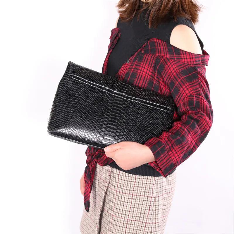 Elevate your style with this high-quality, soft leather folder laptop bag featuring a trendy snake grain pattern. Perfect for work or casual outings.