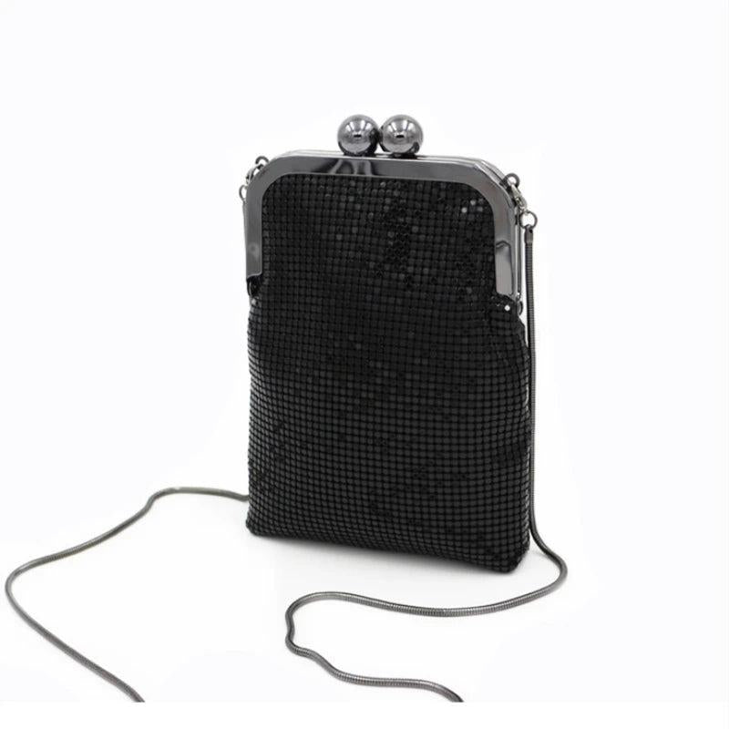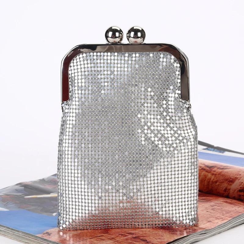 Shine at your evening events with this metallic aluminum flash bucket clutch bag. Perfect for parties, banquets, and dinners. Features a shoulder strap for easy carrying and storage space for your essentials.