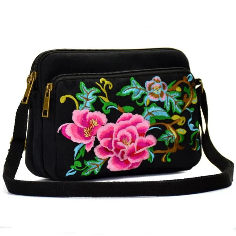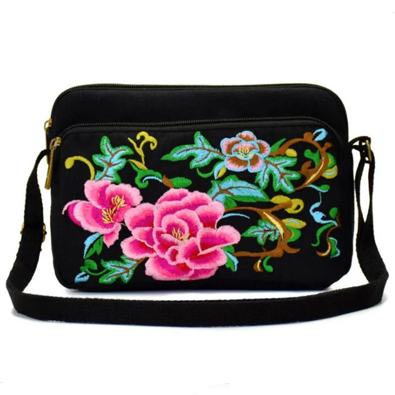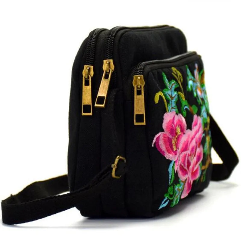 Arrival Women Canvas Floral Embroidery Messenger Bag Shoulder Small Phone Coins