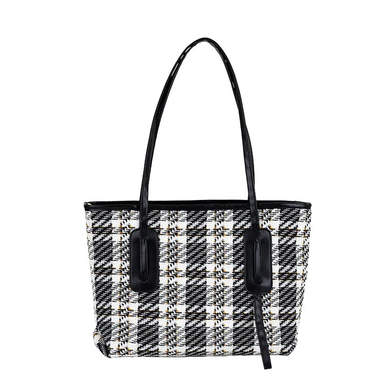 Stay stylish and organized with this large-capacity plaid tote bag that is perfect for daily commuting. It features a classic design suitable for autumn.