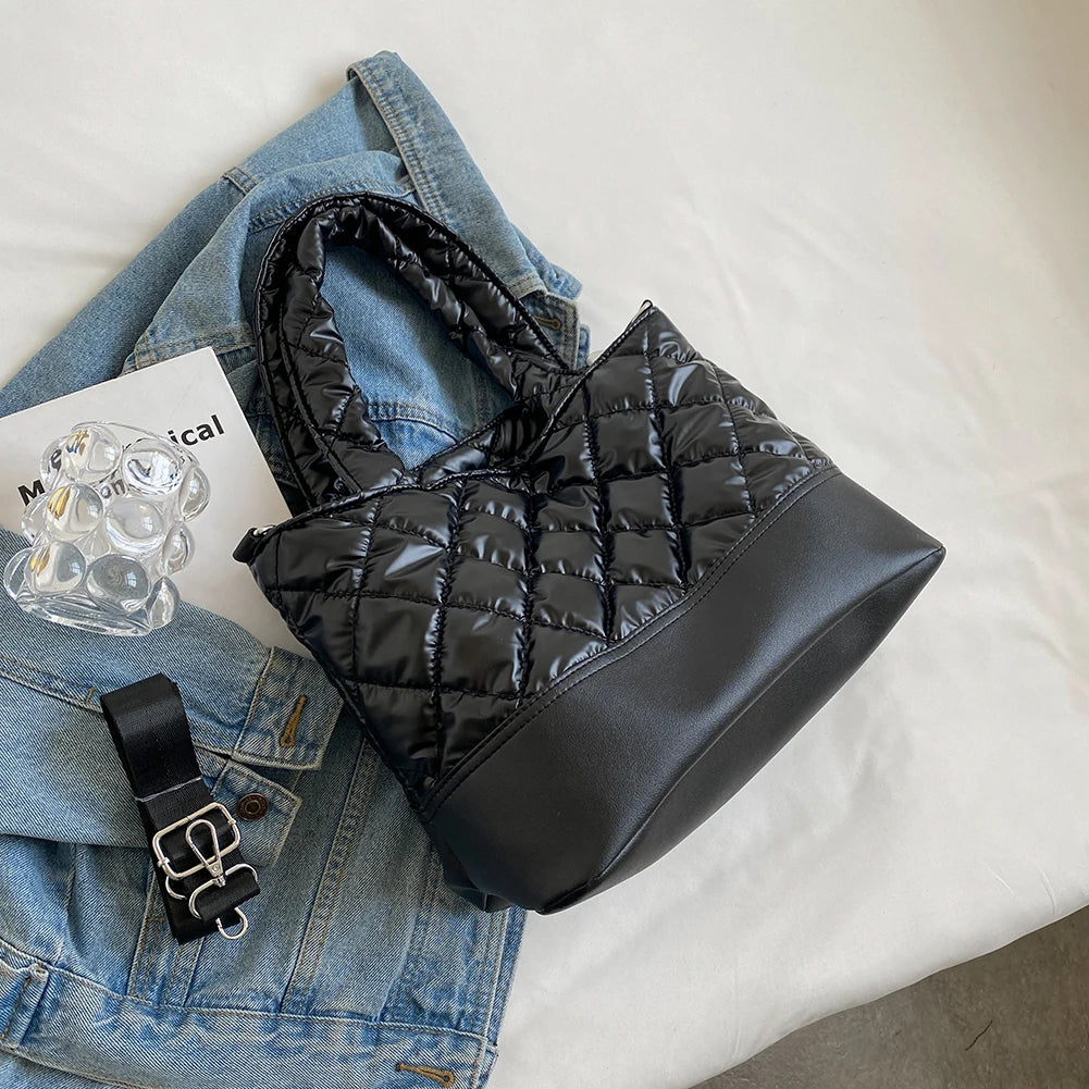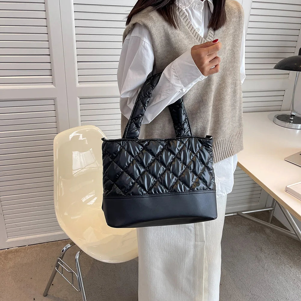 Stay trendy and organized with this padded cotton shopper travel bag designed for modern women. Perfect for autumn and winter seasons.