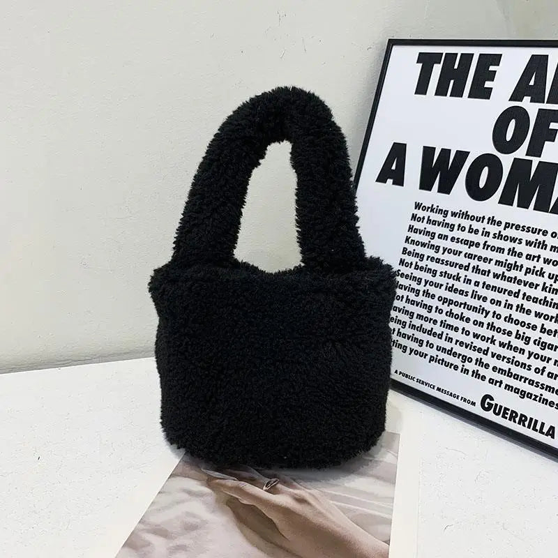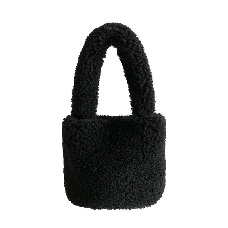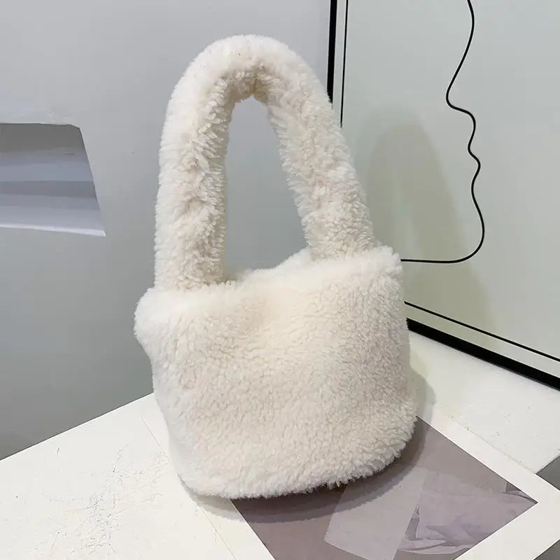 Elevate your style with this fashionable plush bucket bag featuring high-quality lamb wool. Perfect for the colder seasons, this versatile and simple design adds a touch of luxury to any outfit.