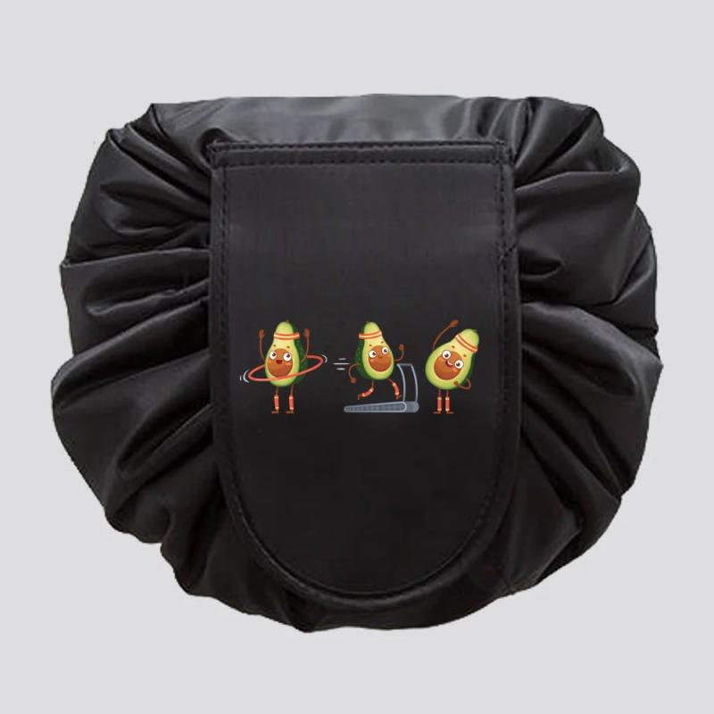 Stay organized on the go with this cute avocado patterned cosmetic bag. It's a foldable, drawstring shoulder makeup pouch perfect for travel.