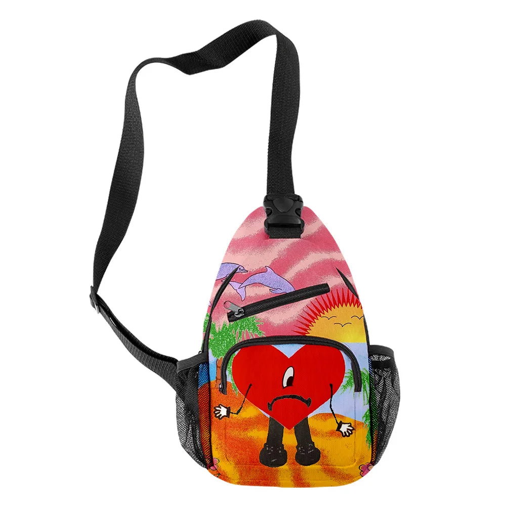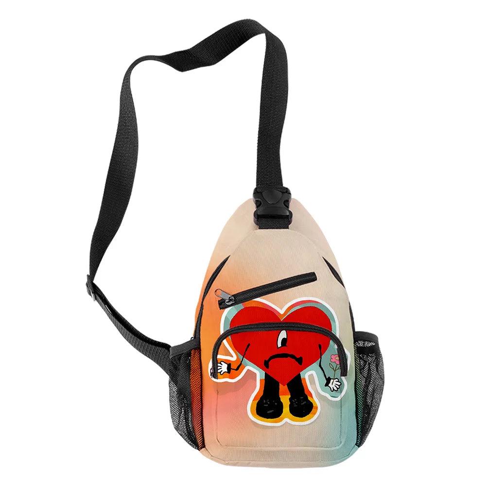 This Bad Bunny Anime Chest Bag is perfect for children, teens, women, and men. Made of durable Oxford fabric, this waterproof messenger bag is ideal for carrying essentials in style.