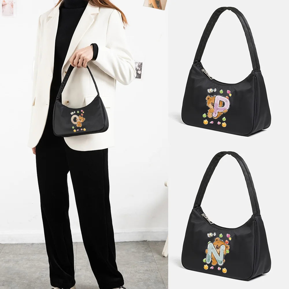Bear Letter Print Shoulder Bag for Women Underarm Tote Purses