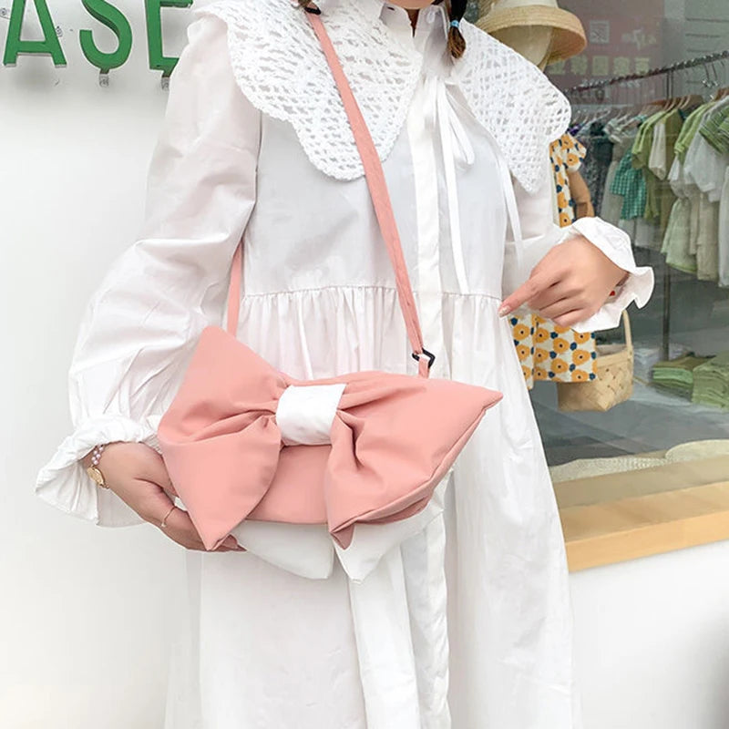 This stylish shoulder bag features a big bow design, making it perfect for teenagers and street fashion. It's lightweight and versatile, suitable for everyday use.