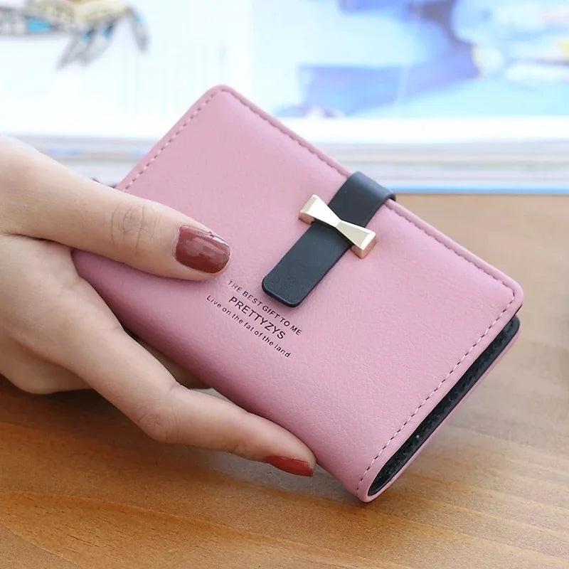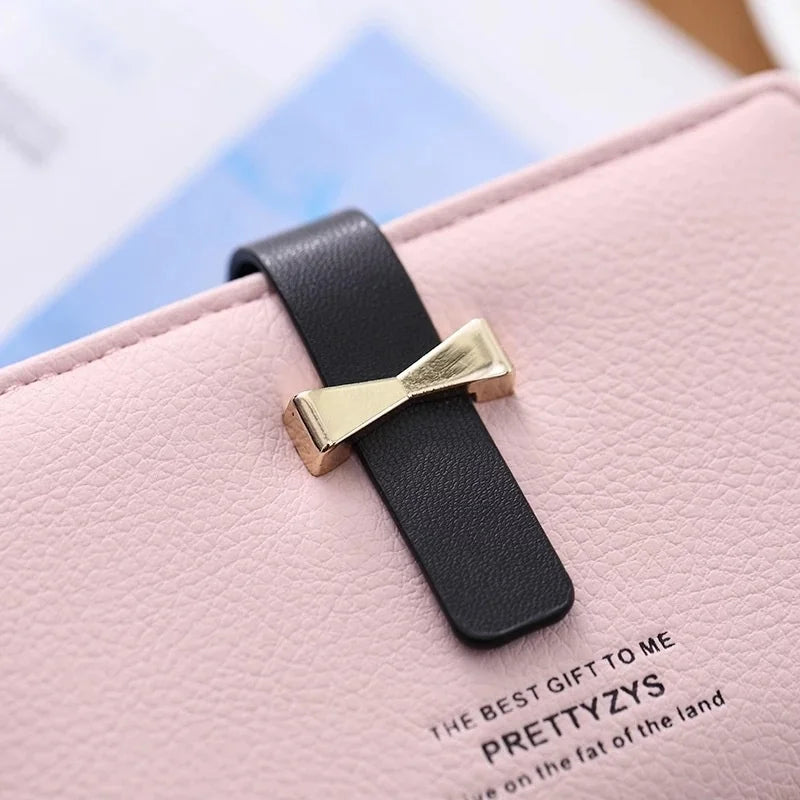 This women's card bag features a pretty butterfly knot design in a thin and small size, perfect for carrying bank cards. It has a mini and small fresh style.