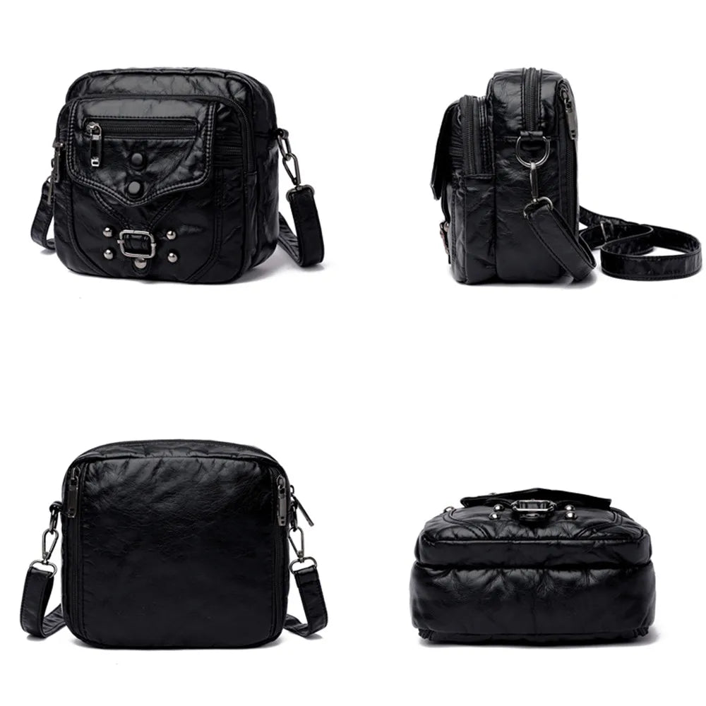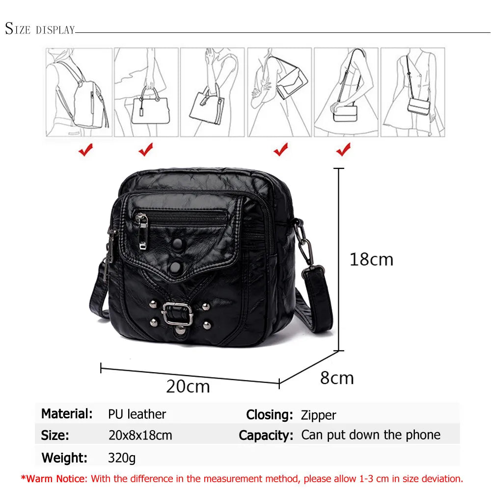 Stay stylish and organized with this chic crossbody bag made of high-quality PU leather. It features a button rivet design that adds an elegant touch to any outfit.