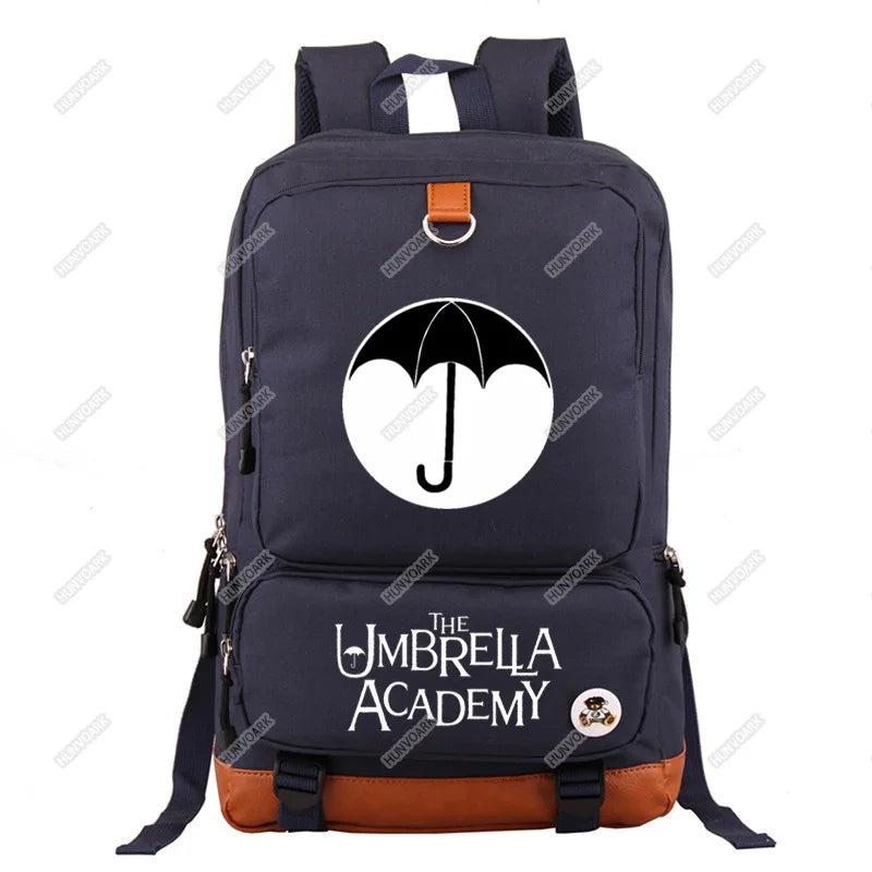 This canvas backpack inspired by the Umbrella Academy is perfect for men and women. It features a big school bag design with military-style elements.