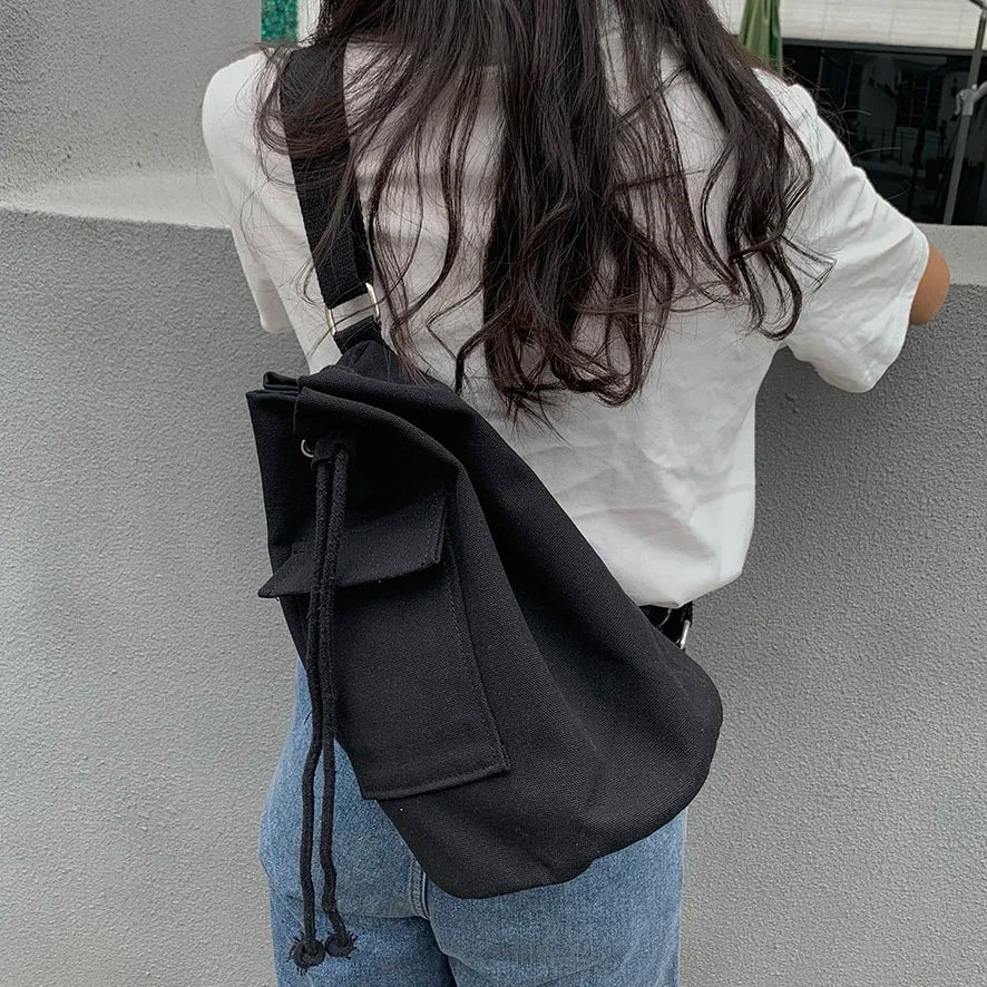 Canvas Bucket Bag for Women Casual Shoulder Bag Student School Bag