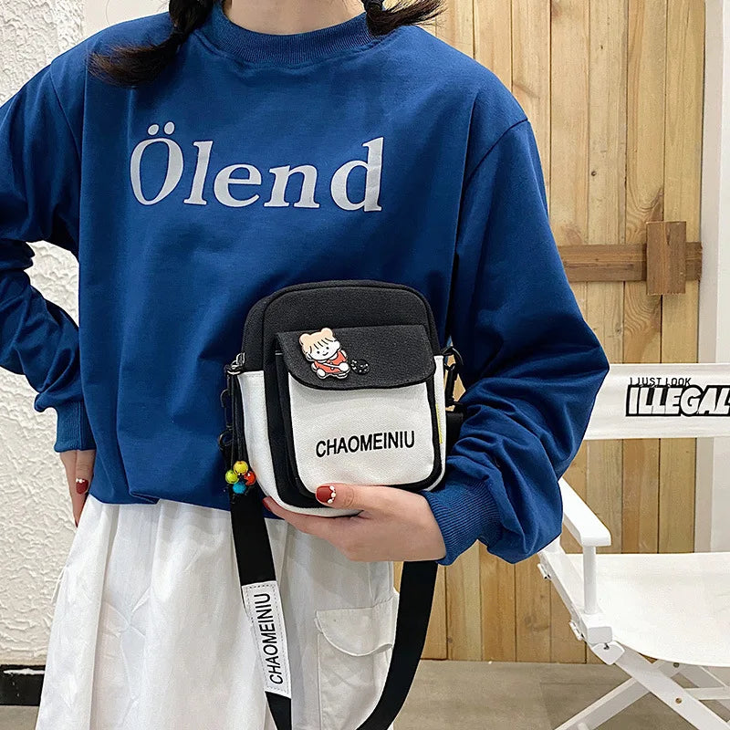 Canvas Mini Crossbody Bag for Women Youth Student Shoulder Purse