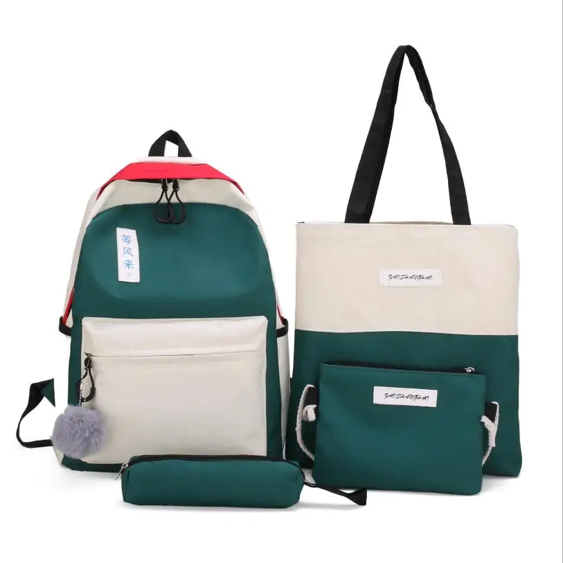 This 4pcs/set includes a large capacity backpack, school bag, purse, and pencil case. Perfect for teenage girls with patchwork design.