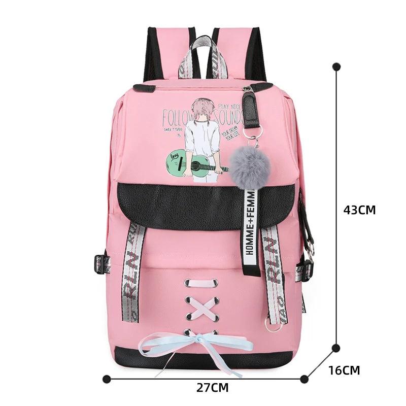 This school backpack is designed for girls and teenagers with a large capacity. It features USB charging capability and is suitable for middle and high school students.