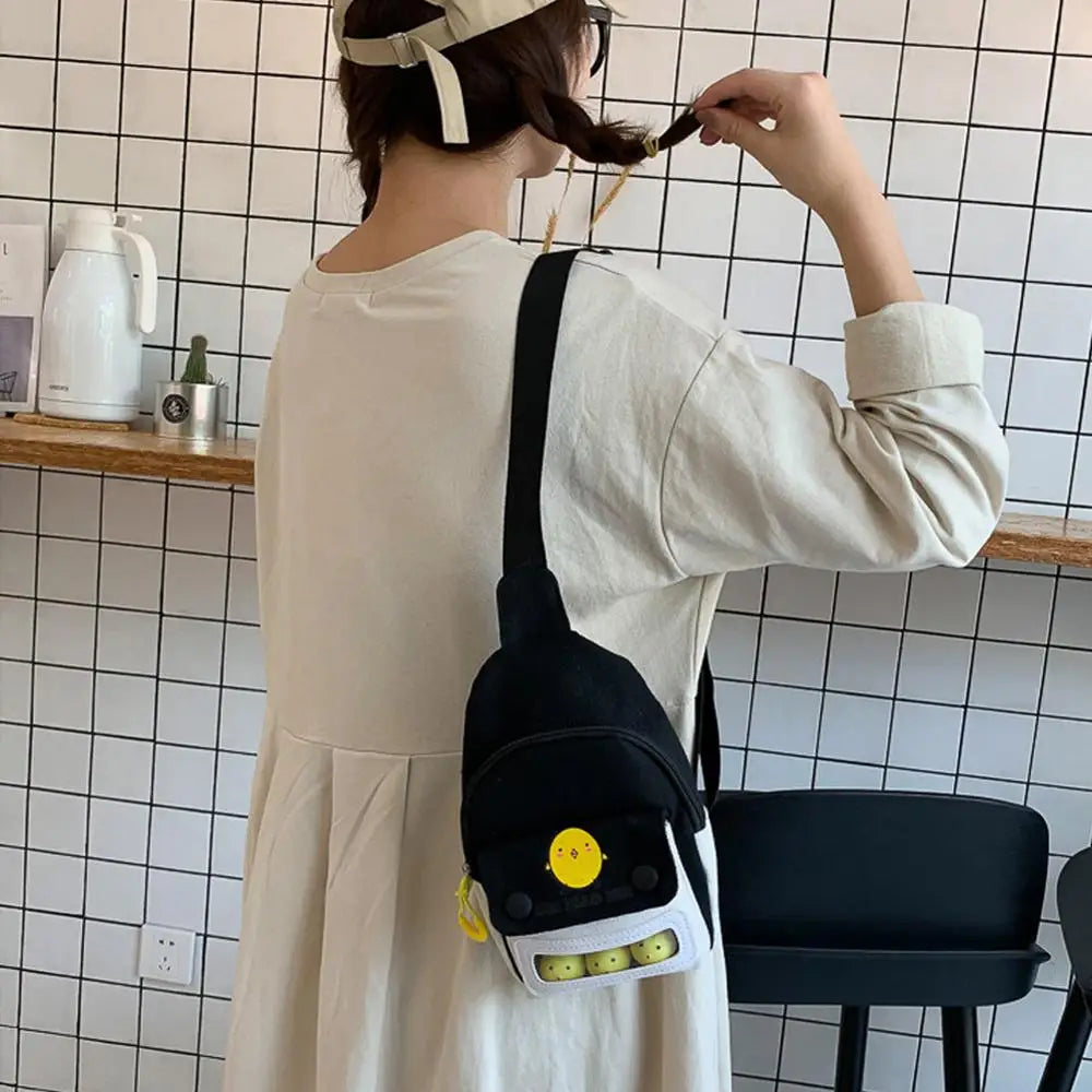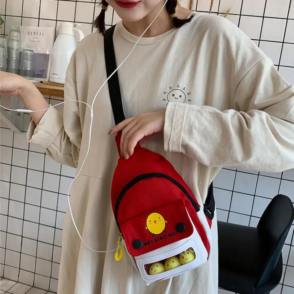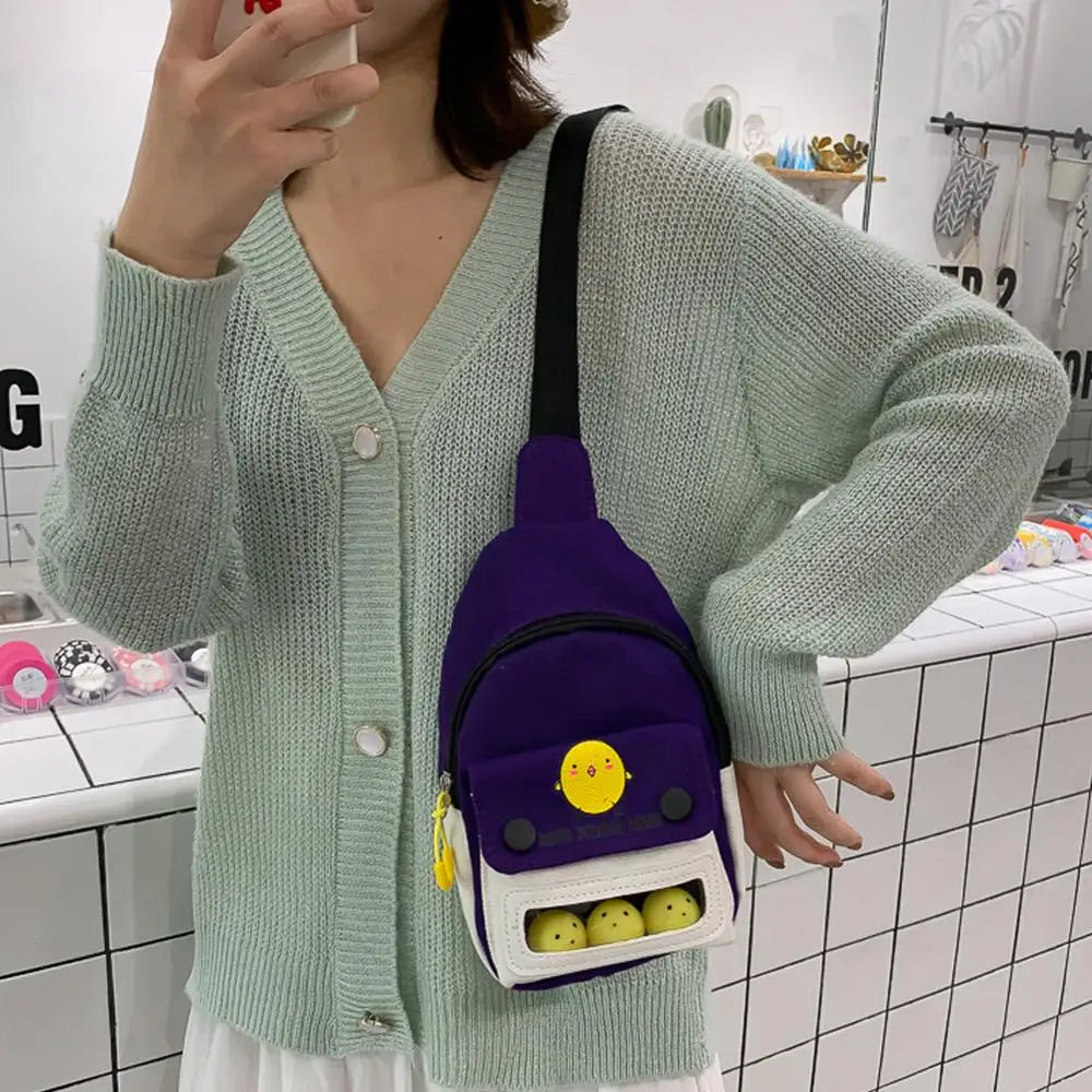 This versatile vertical canvas chest bag is perfect for women on the go. It offers a stylish and practical solution for carrying your essentials.