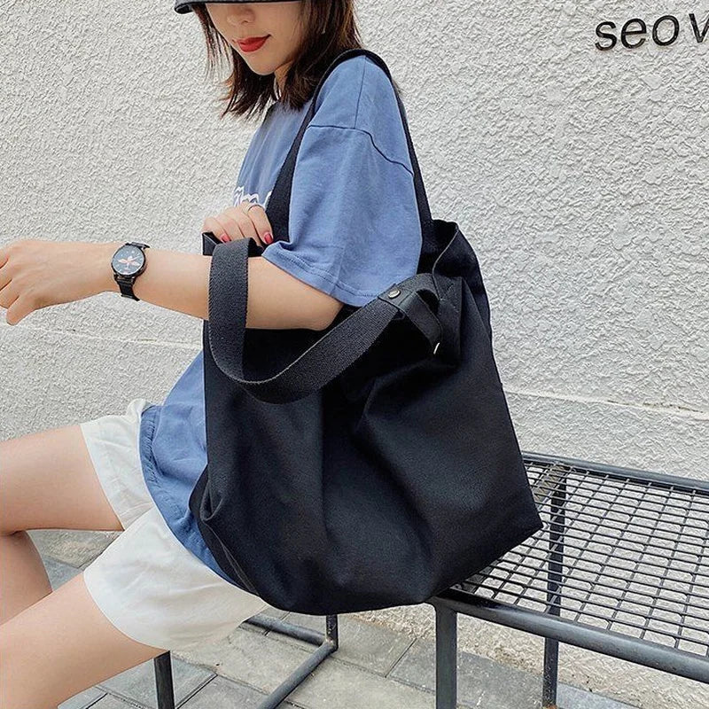 This stylish and spacious canvas shoulder bag is perfect for students and casual outings. It features a Japanese Harajuku design and offers large capacity for books, shopping, and travel essentials.
