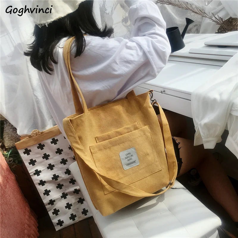 Canvas Shoulder Bag Women Preppy Style Large Capacity Bookbag