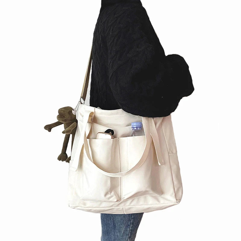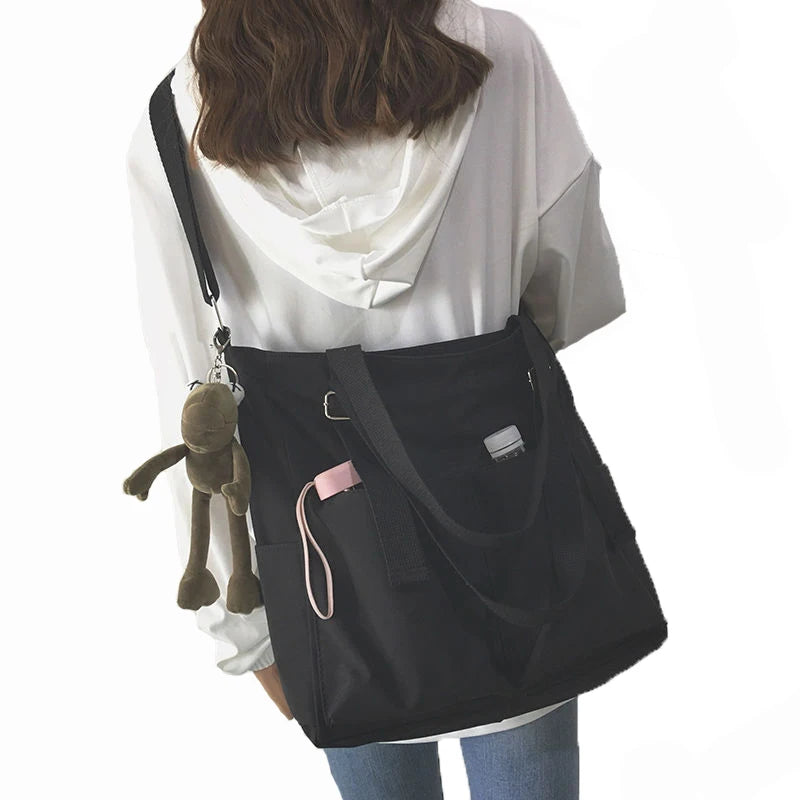 This large capacity shoulder bag is perfect for school or casual use. Made of canvas material, it is waterproof and durable.