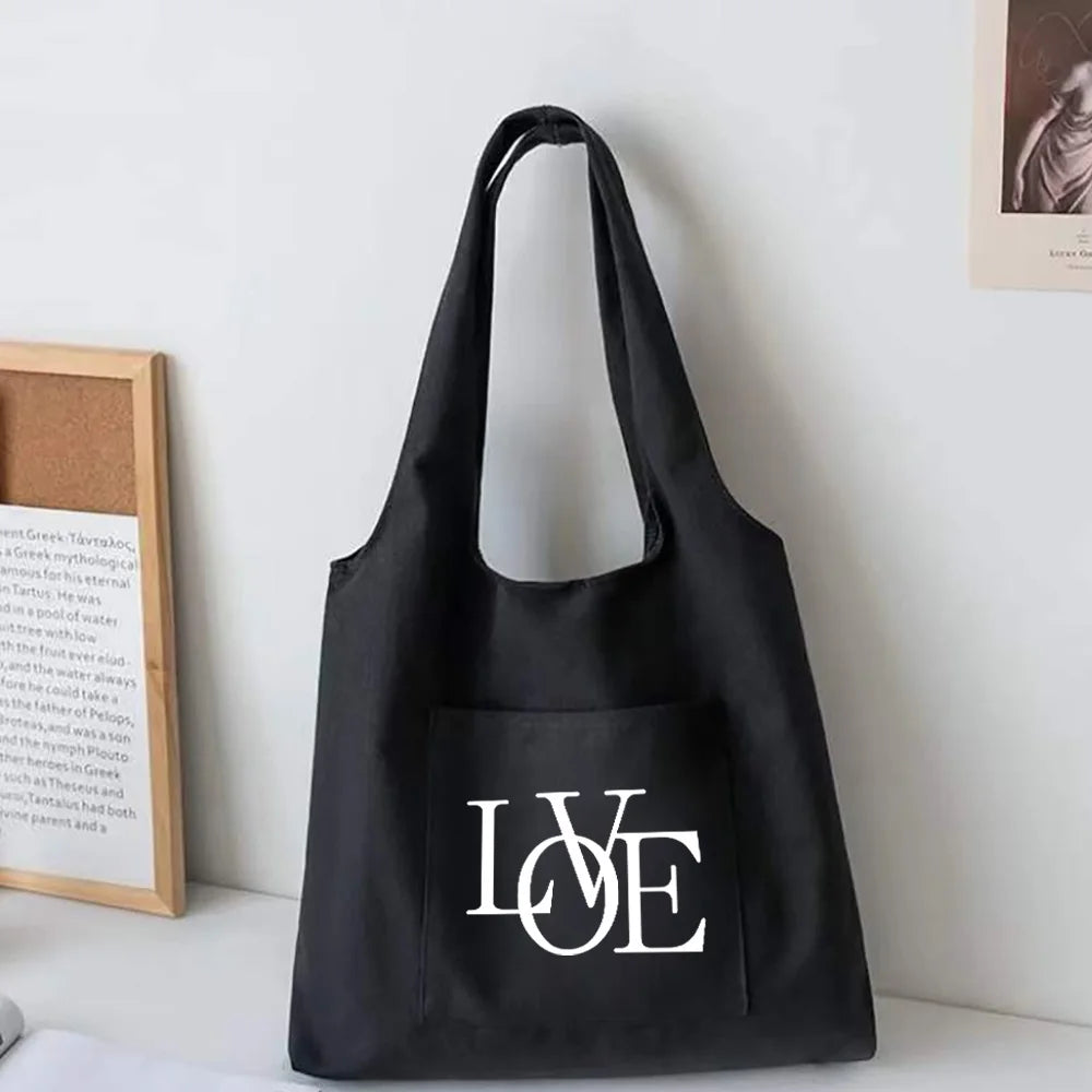 This canvas tote bag is perfect for carrying your belongings while shopping or going to class. It has a large capacity and is great for carrying sundries.
