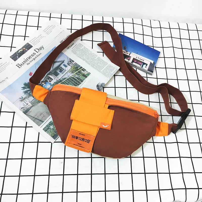 Canvas Waist Bag Women Letter Fanny Pack Crossbody Belt Girls Chest Bum Bag