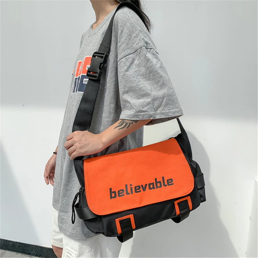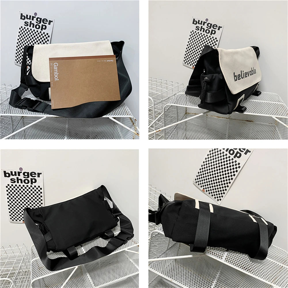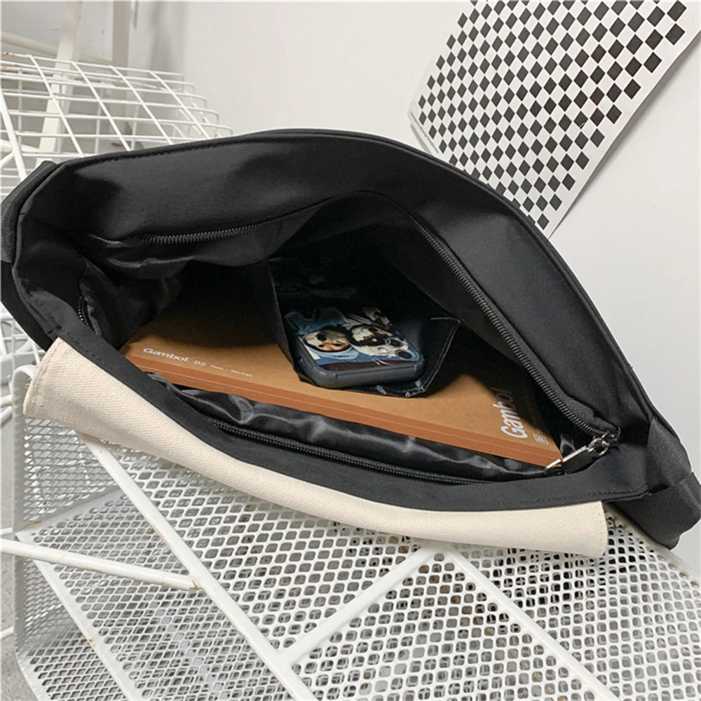 This panelled ladies shoulder bag is perfect for students with a spacious design, made of durable canvas material.