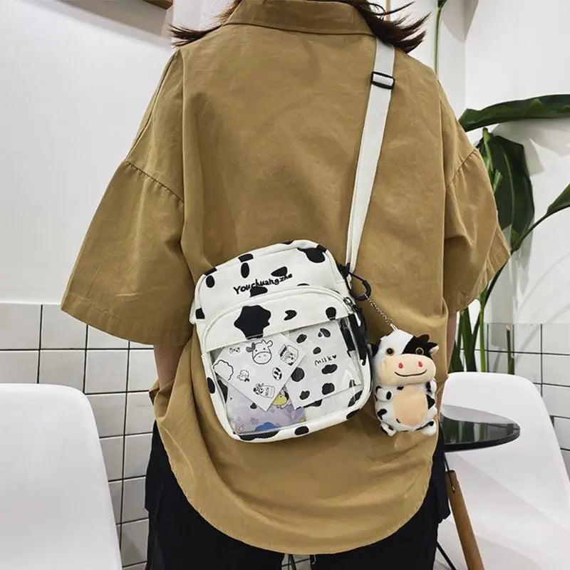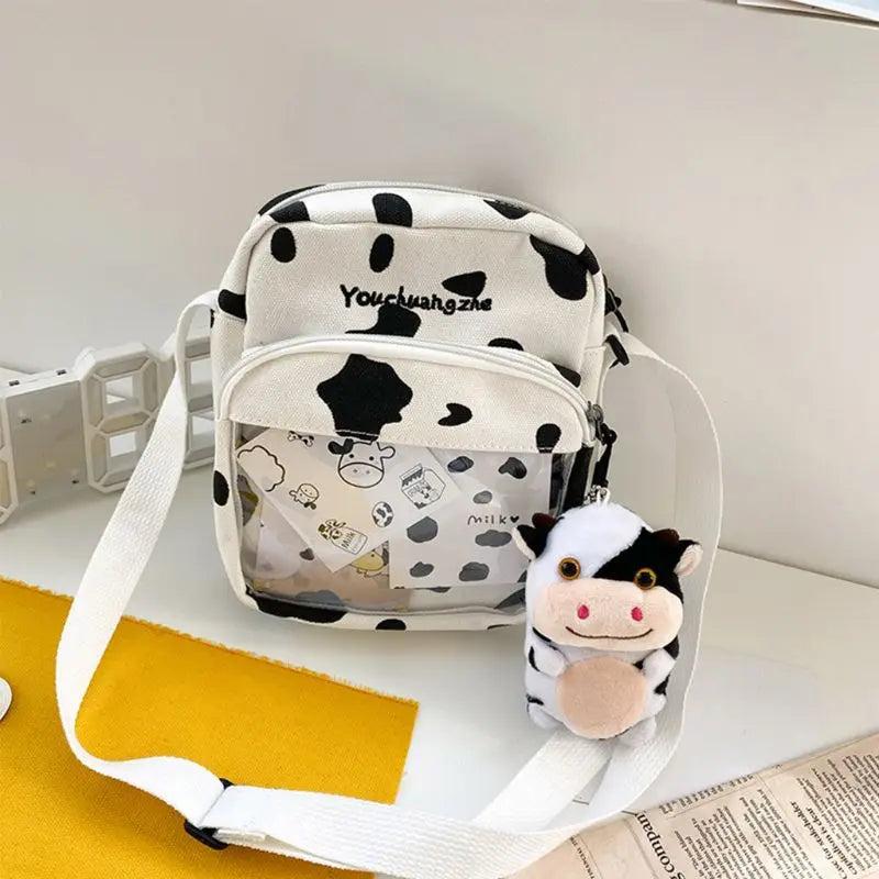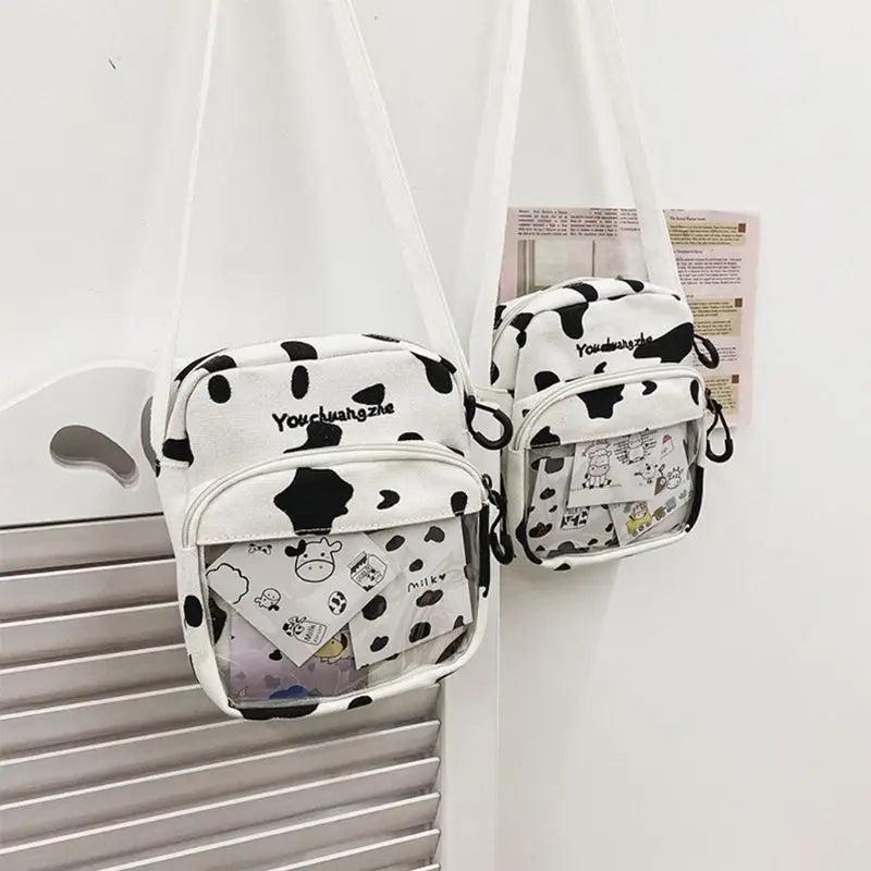Cartoon Cow Print Shoulder Crossbody Bag Canvas Satchel