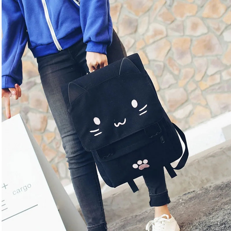 Description:This casual backpack features a cute cat design. Perfect for school or everyday use.Features: Cute cat design on canvas material Suitable for school or casual use Spacious compartments for books and essentials Adjustable shoulder straps for comfort Durable construction for long-lasting use This product may be available in additional colours...
