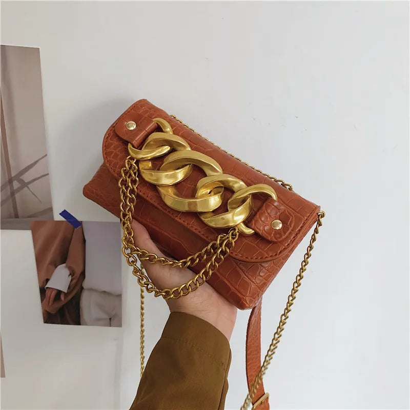 Chain Buckle Shoulder Strap Messenger Phone Bag PU Leather Waist Bag Women