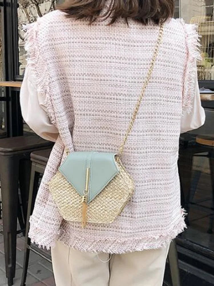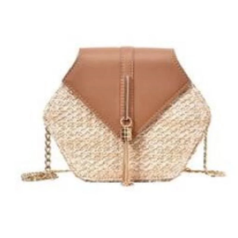 Chain Messenger Bags Women Summer Rattan Woven Beach Boho Bags Crossbody