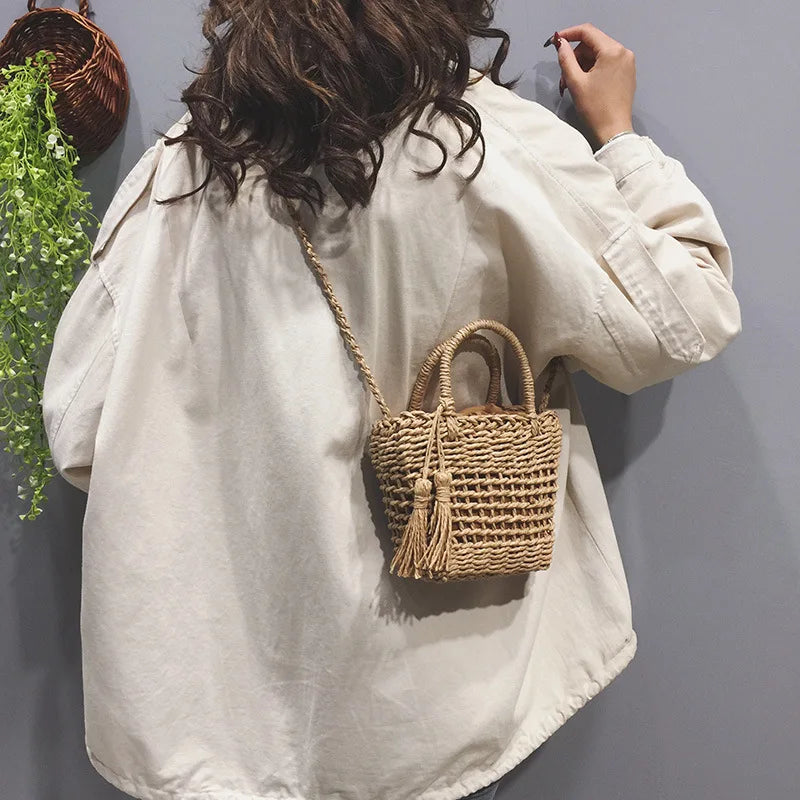 Stay stylish with this new cherry grass woven shoulder bag, perfect for a day at the beach or a casual outing.