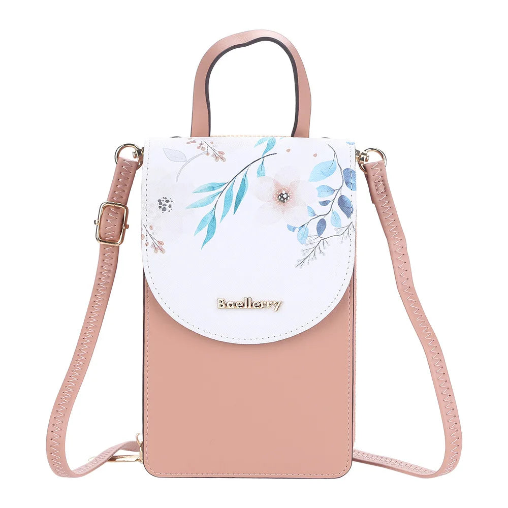 Stay stylish with this elegant mobile phone shoulder bag featuring a beautiful Chinese floral design. The pink messenger bag comes with a cover for added security.