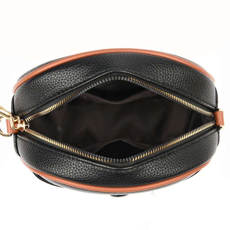 This circular shoulder bag is made from high-quality PU leather, perfect for women on the go. It can be worn as a crossbody bag or a messenger bag, adding a chic touch to any outfit.